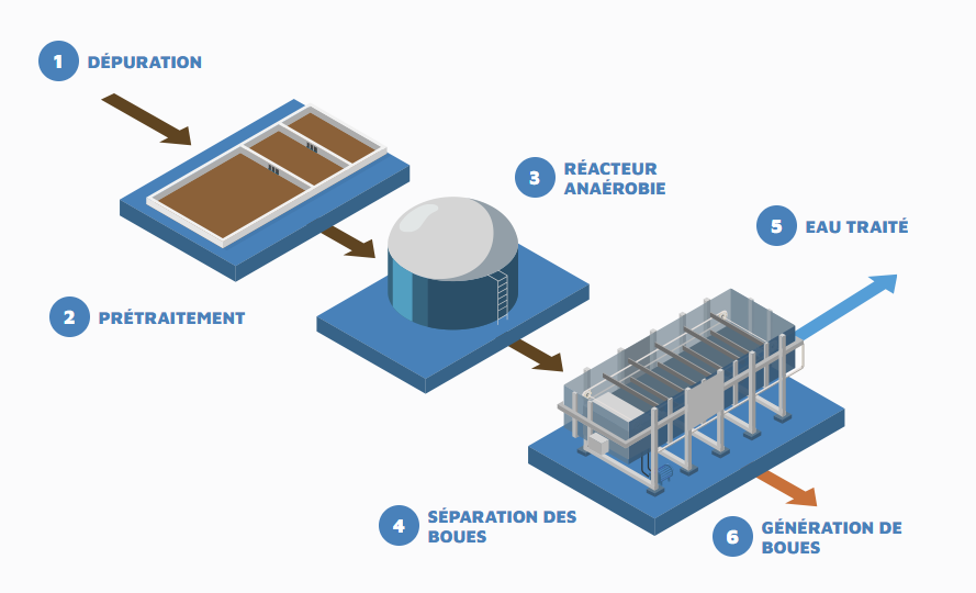- Production minimale de boues en excès: Le processus anaérobie génère très peu de boues en excès.