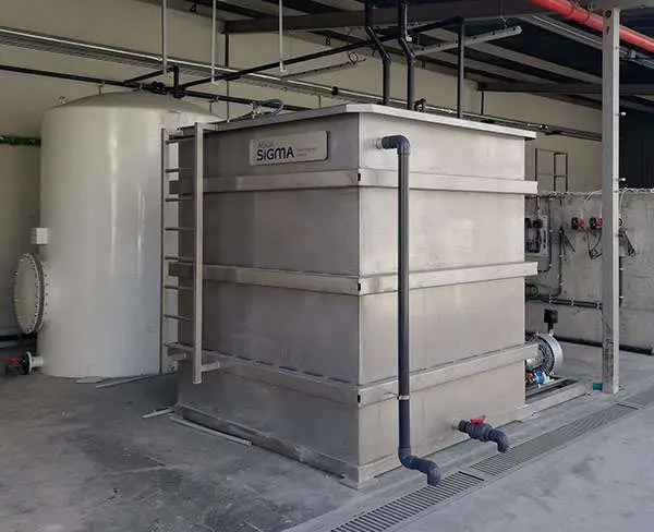 Après l’éventuelle étape de stripping, le liquide passe par un traitement biologique dans un réacteur MBR (bioréacteur à membranes) conçu par Agua Sigma. Ce réacteur comprend :