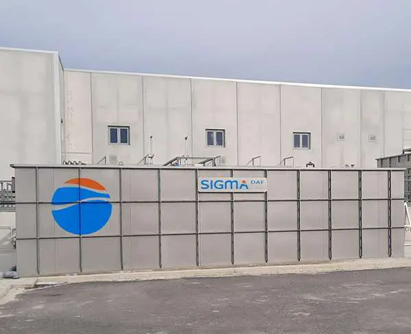 Les particules fines et les matières en suspension sont ensuite séparées via un processus de coagulation-floculation. L’eau contenant les flocs formés est dirigée vers un équipement de flottation SIGMADAF, où ces flocs sont extraits par des microbulles. Ce procédé permet de réduire les matières en suspension à des niveaux très bas.