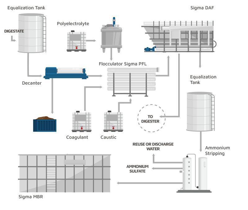 Avant ce processus, un prétraitement est nécessaire pour réduire la teneur en matières solides grossières et en matières en suspension. Les technologies les plus efficaces pour cette séparation sont les décanteurs et les systèmes de flottation à air dissous.